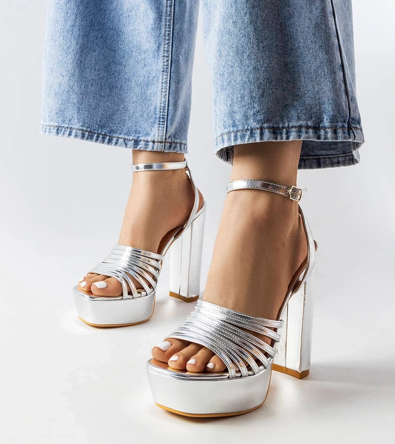 Strieborné sandále na zdobenom podpätku od Westtide