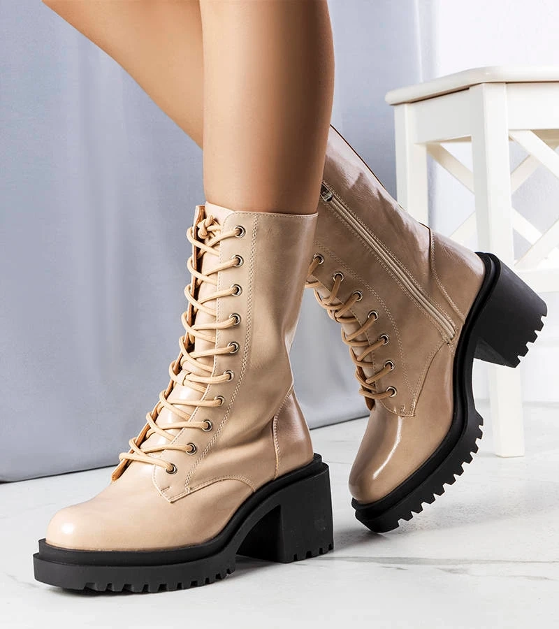 Verno béžové zateplené topánky na podpätku