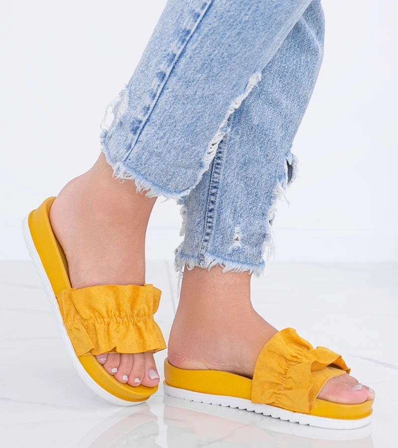Žabky horčicovej farby s ozdobnou podrážkou Riri
